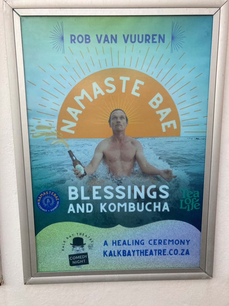 Kalk Bay is a traditional fishing village, well worth a visit. Lots of coffee shops, hippiesque shops, tidal pools, and people selling kombucha. Which fed nicely into the comedy show ‘namaste bae’ with comedian Rob Van Vuuren. It was both hilarious and cringe-inducing. If I had enough hair to grow a top knot I’d be cutting it off and be eating meat again. Perhaps my yogic healing days are over. https://www.instagram.com/robvanvuuren/